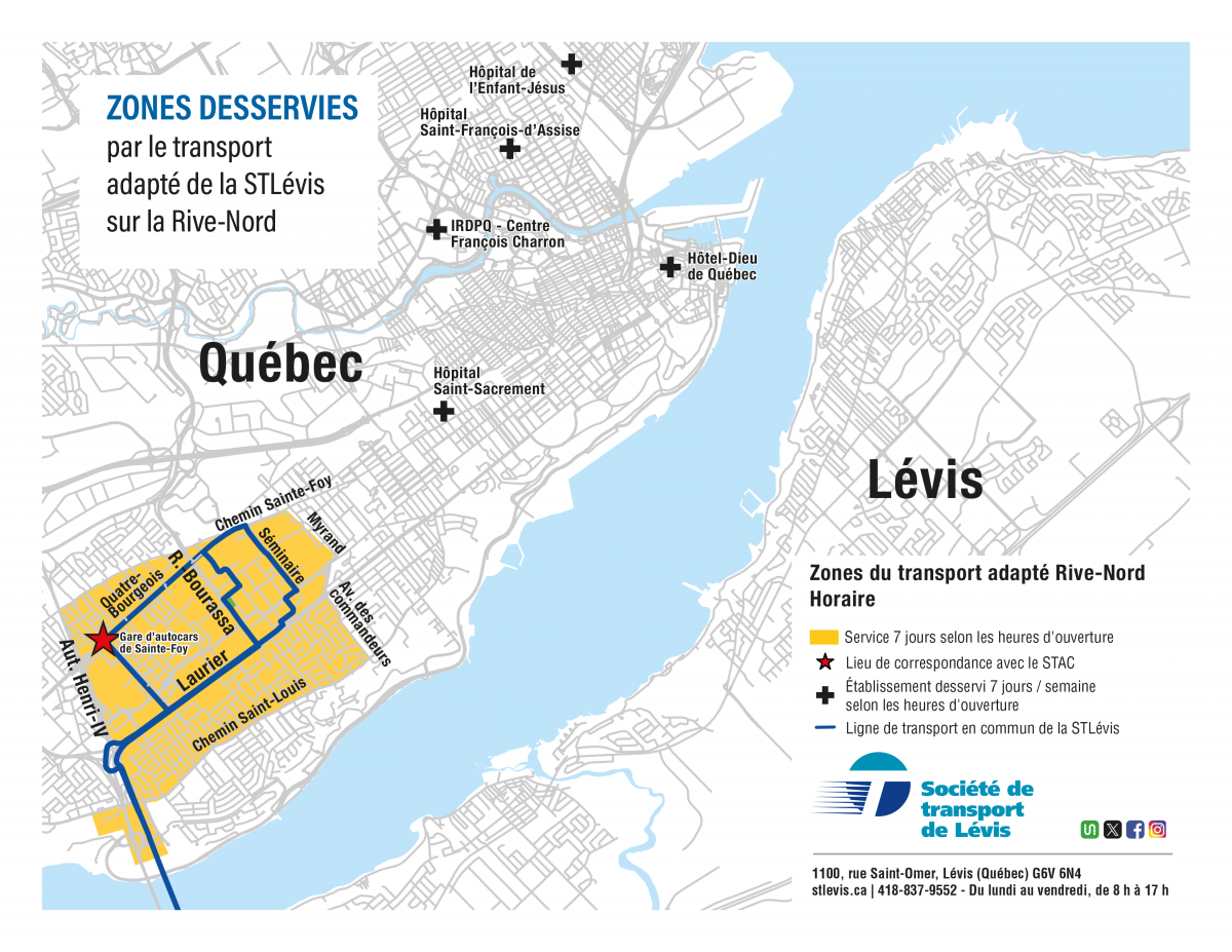 Le transport adapté de la STLévis dessert la Ville de Lévis et la Municipalité de Saint-Lambert-de-Lauzon.